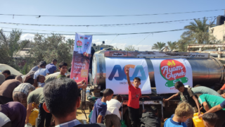 Gaza — Bantuan kemanusiaan berupa air minum disalurkan kepada warga terdampak krisis di wilayah Jalur Gaza, mencakup kawasan...