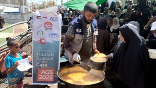 Gaza Tengah — Bantuan kemanusiaan berupa makanan siap saji kembali disalurkan kepada warga terdampak krisis kemanusiaan di wilayah...